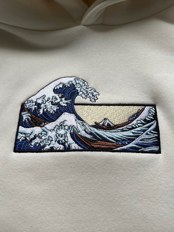 „Wielka Fala w Kanagawie” Hokusai’a to jedno z najbardziej rozpoznawalnych dzieł japońskiej sztuki – pełne dynamiki, energii i detali, które zachwycają od pokoleń. Teraz ten kultowy motyw możesz mieć zawsze przy sobie, przeniesiony na odzież w formie starannie wykonanego, trwałego haftu. To nie jest zwykły wzór – to wyszyte arcydzieło.